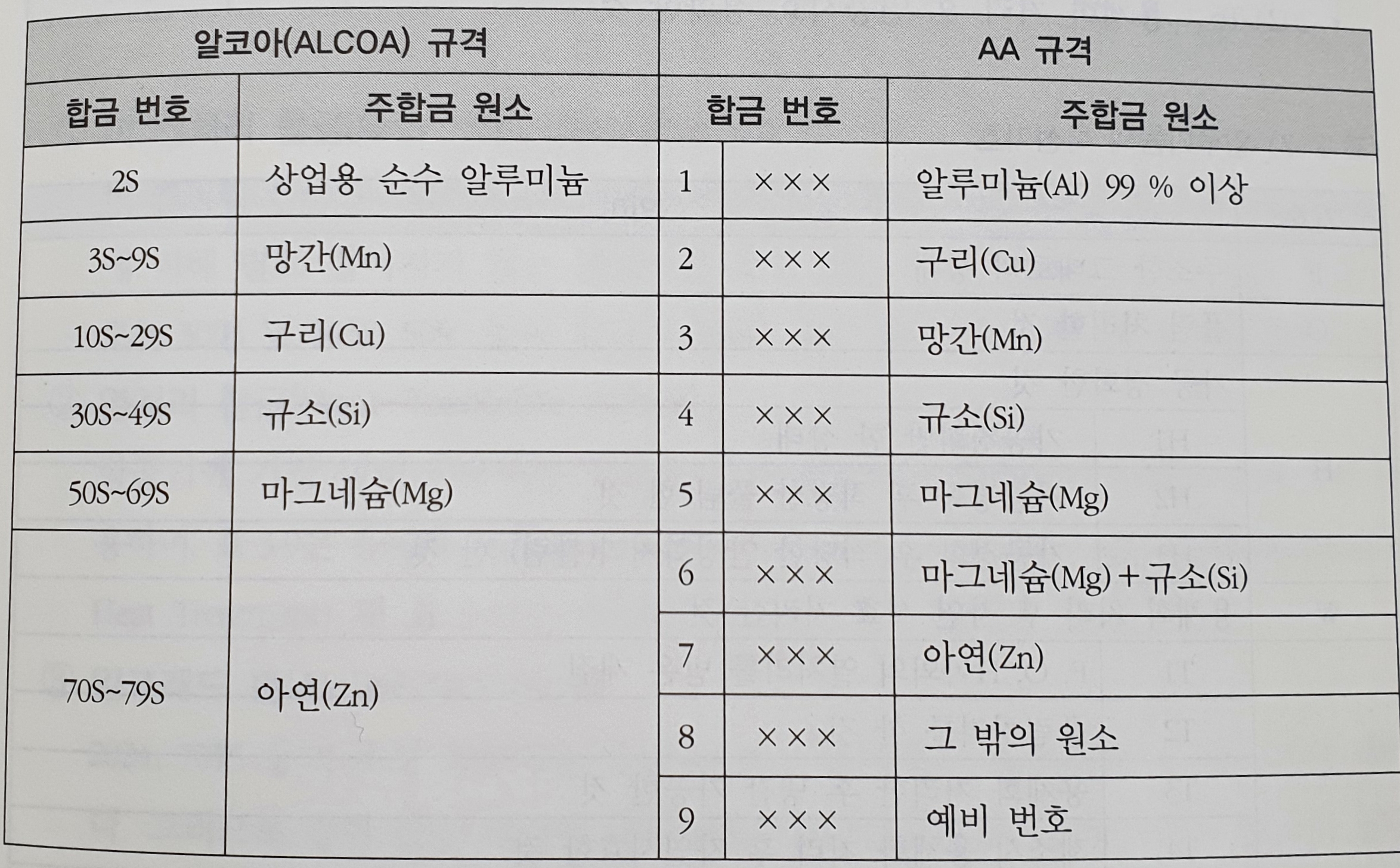 현재 표준 알루미늄 합금의 종류가 많이 때문에, 각 국가별로 여러 가지 표준 규격을 정해서 사용합니다.