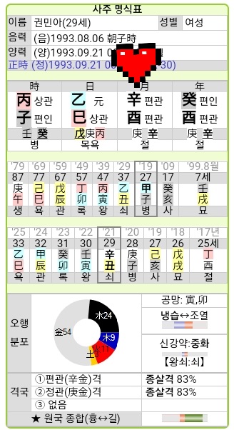 권민아 사주 프로필 알아보기(재물 애정 직업 기질 성격 사회적)