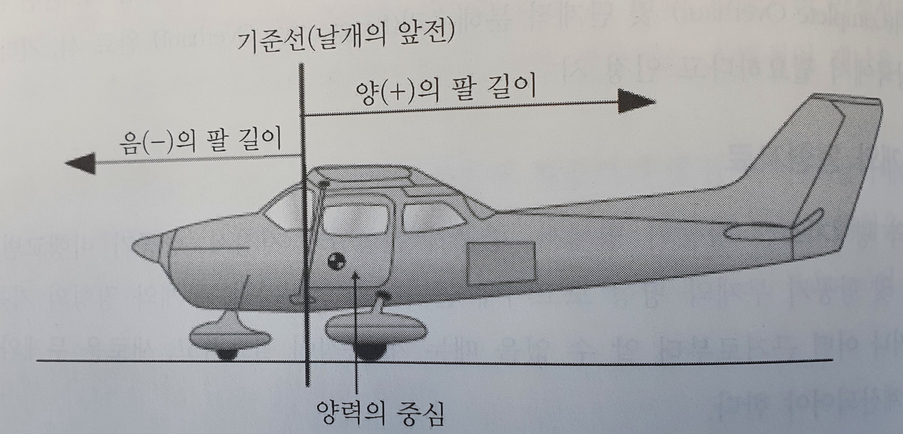 그림 1-3에서 보면 팔 길이(Arm)는 항공기의 기준선에서 무게의 중심까지의 거리를 말하죠