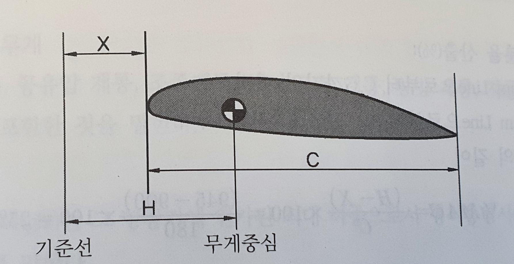 그림 1-5와 같이 날개의 평균 공력 시위(MAC)위의 어떤 점이나 중심의 위치를 나타낼 때 기준선에서 몇 m 에 있다고 할 수 있지만, 항공기의 무게와 평형에서는 MAC위의 위치를 MAC 길이의 백분율로 하여 몇 % MAC에 있다고 정의를 해요