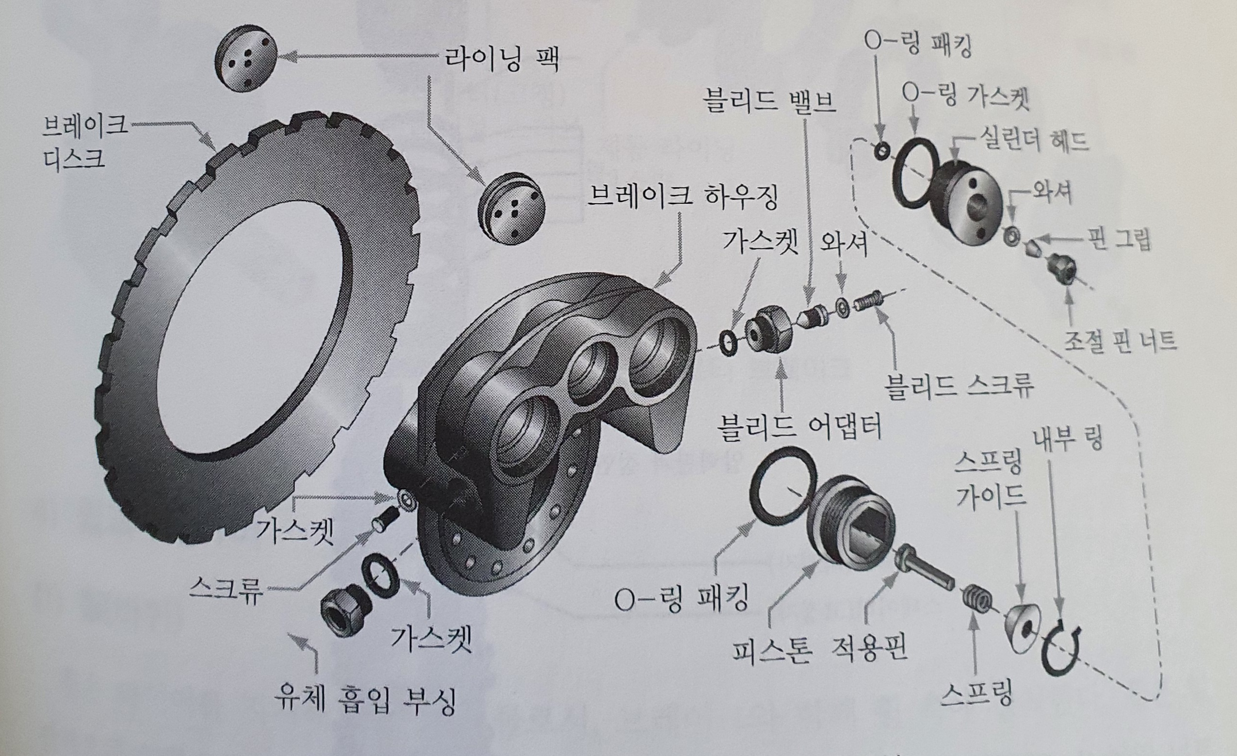 [그림 1-3] 싱글 디스크 브레이크의 구성