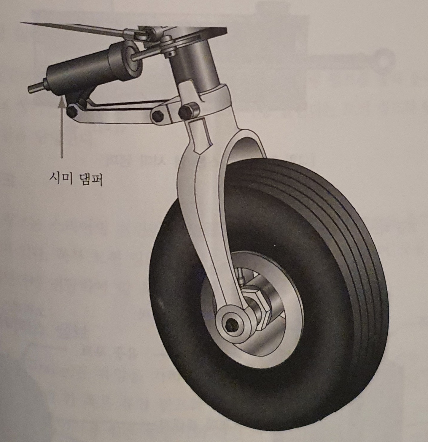유압 보정기가 내장되지 않은 앞 착륙장치는 좌,우로 진동하는 시미현상을 예방하기 위하여 별도의 시미댐퍼를 장착하기도 하죠