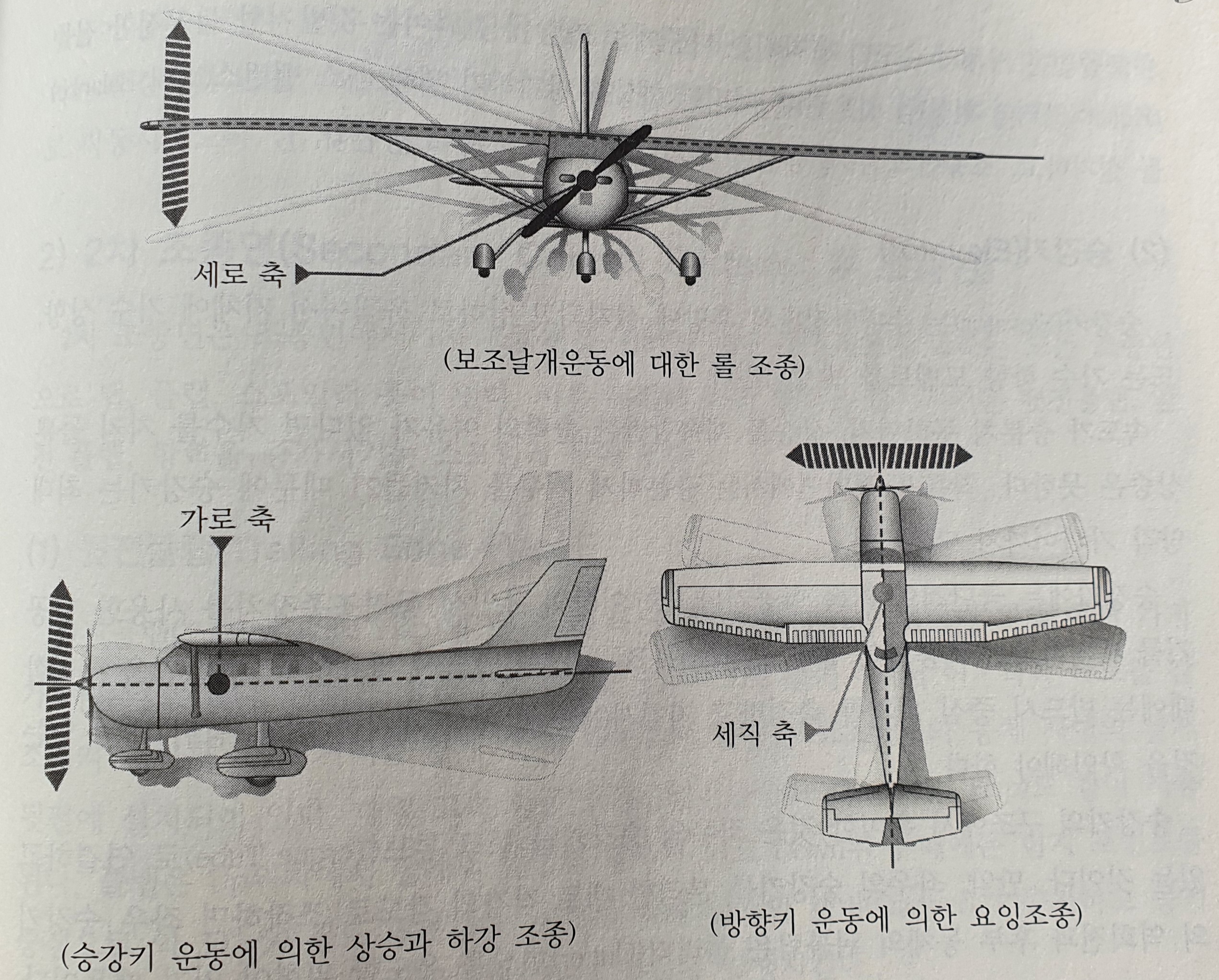 항공기의 자세 조종은 세로축(X), 가로축(Y) 및 수직축(Z) 주위의 조종면에 의해 행해지죠