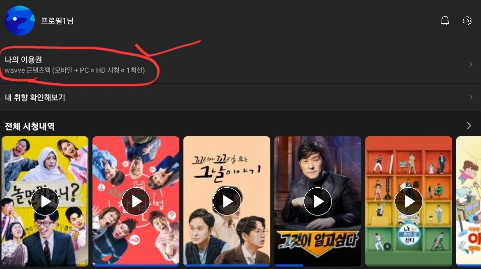 - 나의 이용권을 클릭