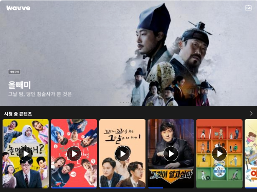 - 스마트폰에서 wavve 모바일 앱 실행