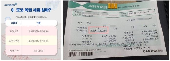 로또 1등 당첨금 세금 및 실수령액