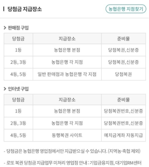 - 로또 2등, 3등 : 농협은행 각 지점(집 근처 농협으로 가시면 되는데 지역 농협은 안됩니다.)