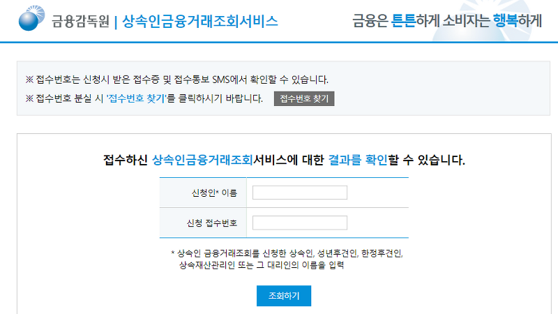 - 사망자 금융거래 조회 홈페이지에서 소액 예금예치 은행을 확인합니다.