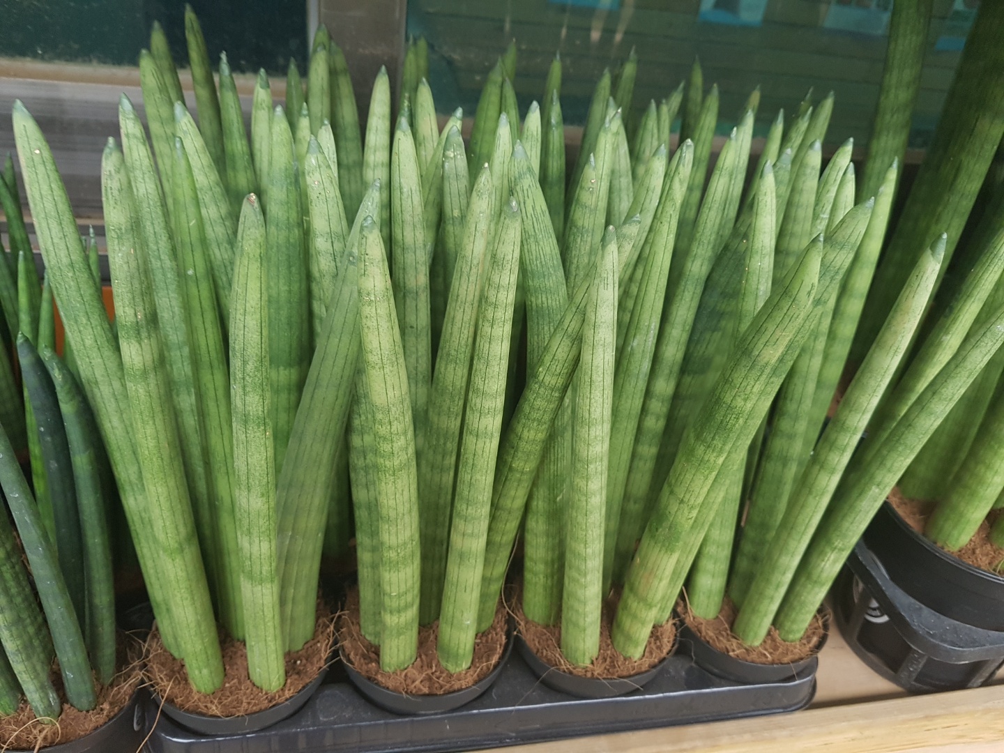 산세베리아는 아시아와 아프리카가 원산지인 관엽식물로 대부분 수직으로 자라며 물을 자주 주지 않아도 되고 간접조명에서도 잘 자라는 등 관리가 쉽기 때문에 사무실이나 가정집에서 흔히 기르고 있습니다.