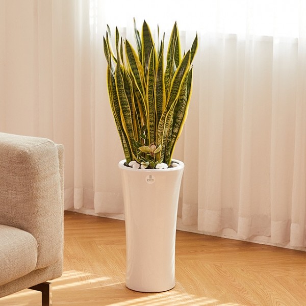 산세베리아는 강력한 공기정화와 산소를 생성하는 기능을 가진 식물로 각종 오염 물질을 제거하고 알레르기 퇴치에 도움이 될 뿐만 아니라 햇빛이 있어야만 산소를 생산할 수 있는 다른 식물과 달리 밤에도 산소를 생산할 수 있습니다.