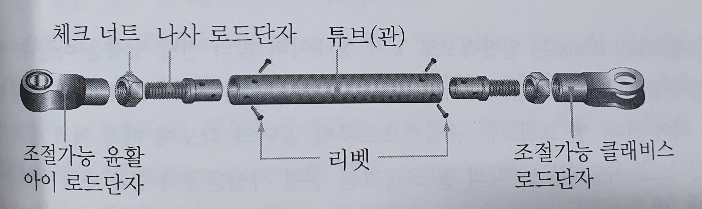 이 로드는 한쪽이나 양쪽 끝에 나사를 사용해서 길이를 조절해요