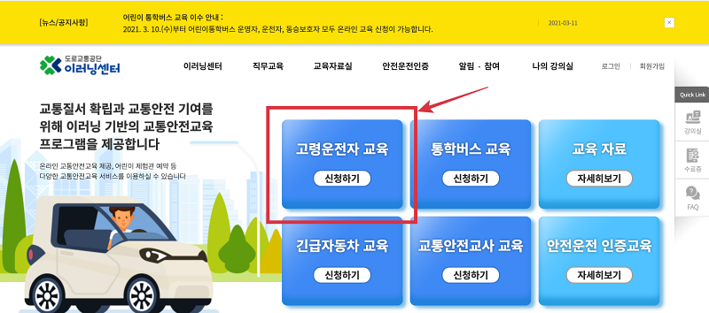 1) 고령운전자 온라인 교육 신청방법