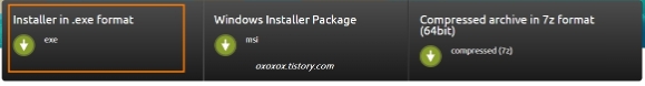 4) 64bit를 누르게 되면 3개의 다운로드가 나오는데 첫번째 [installer in.exe format]을 다운받으세요.
