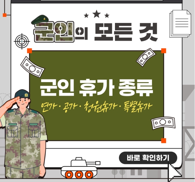 군인 휴가 종류 (연가 공가 청원휴가 위로휴가 포상휴가 보상휴가 재해구호휴가)