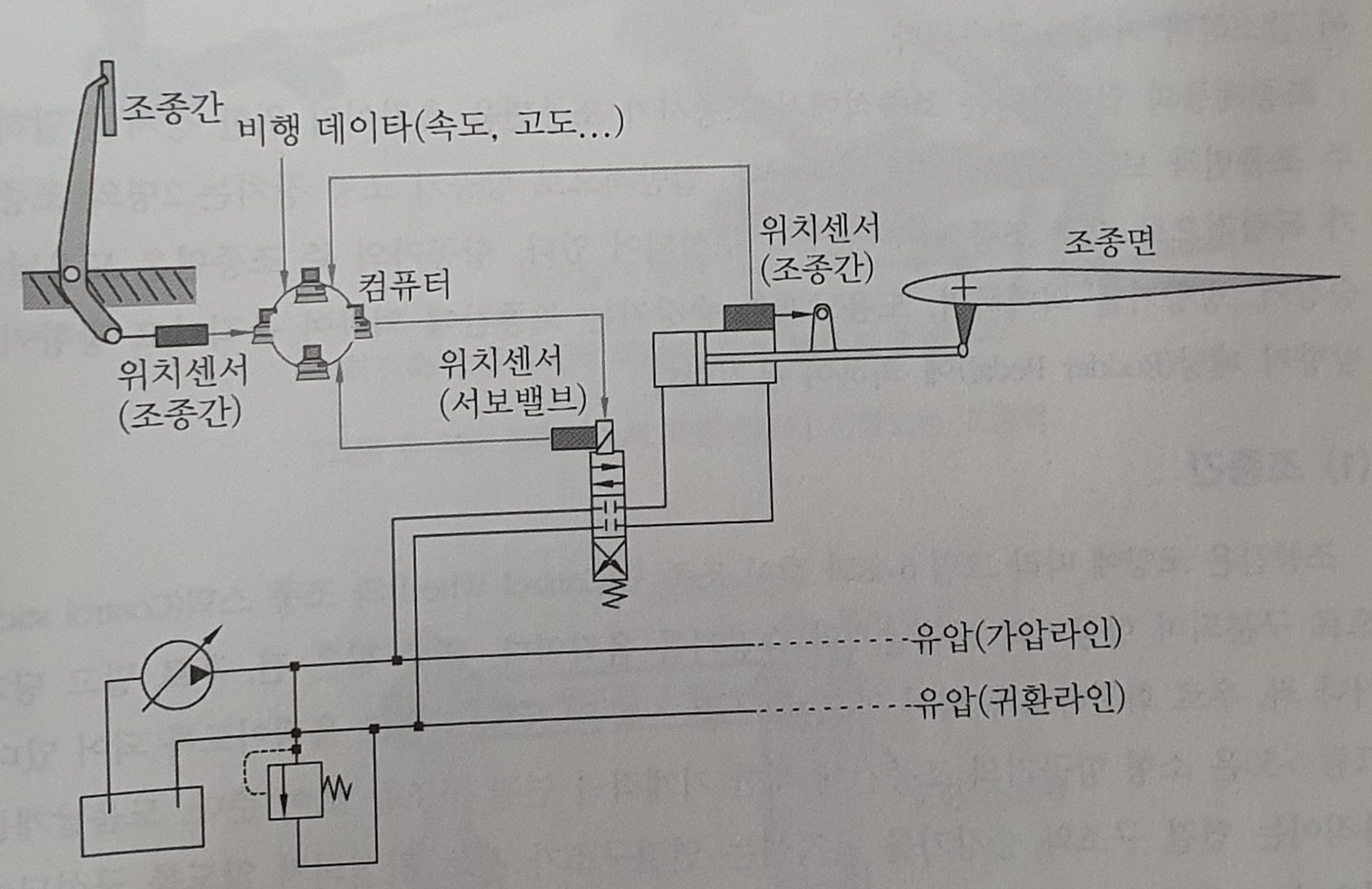 부스터 조종계통에서는 조종사의 조종하는 힘에 비례해서 증가된 힘을 유압장치로부터 조종면에 직접 힘을 가할 수가 있는데요