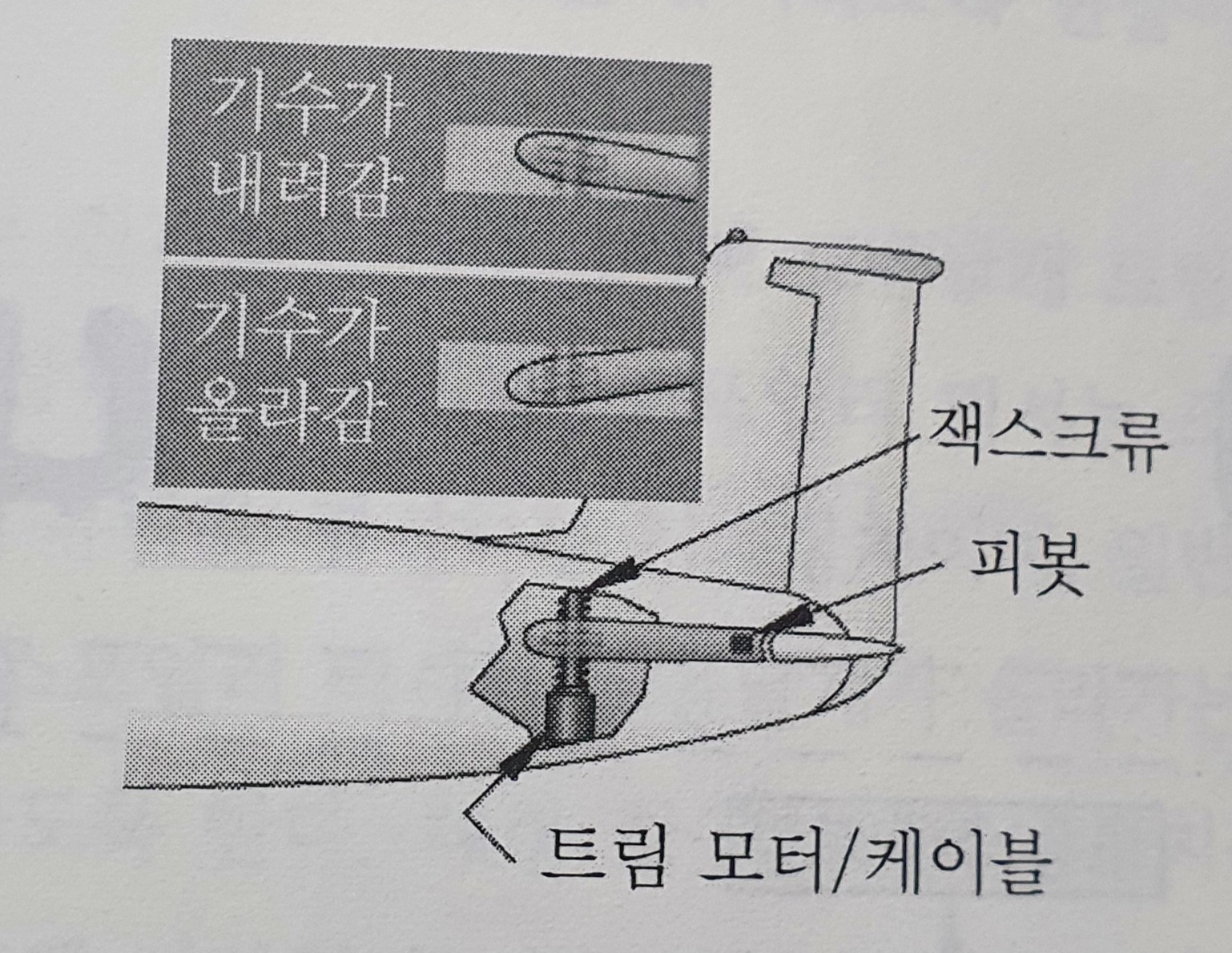 일반적으로 조종할 수 있는 수평안정판을 스테빌라이저라고 하며 케이블에 연결된 트림 모터와 잭스크루에 의해 움직여요.