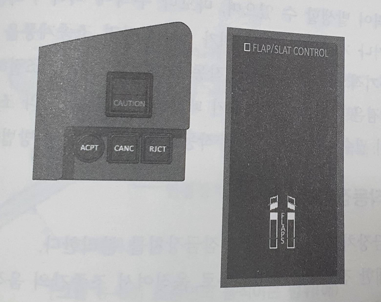 그림 1-2의 우측상단에 표시된 황색의 메시지는 플랩 장치의 고장 상태를 알려주는 하나의 예입니다.