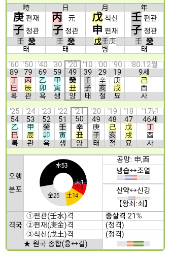 1972년 8월 14일(48세)생에 대한 사주를 풀어보도록 하자.